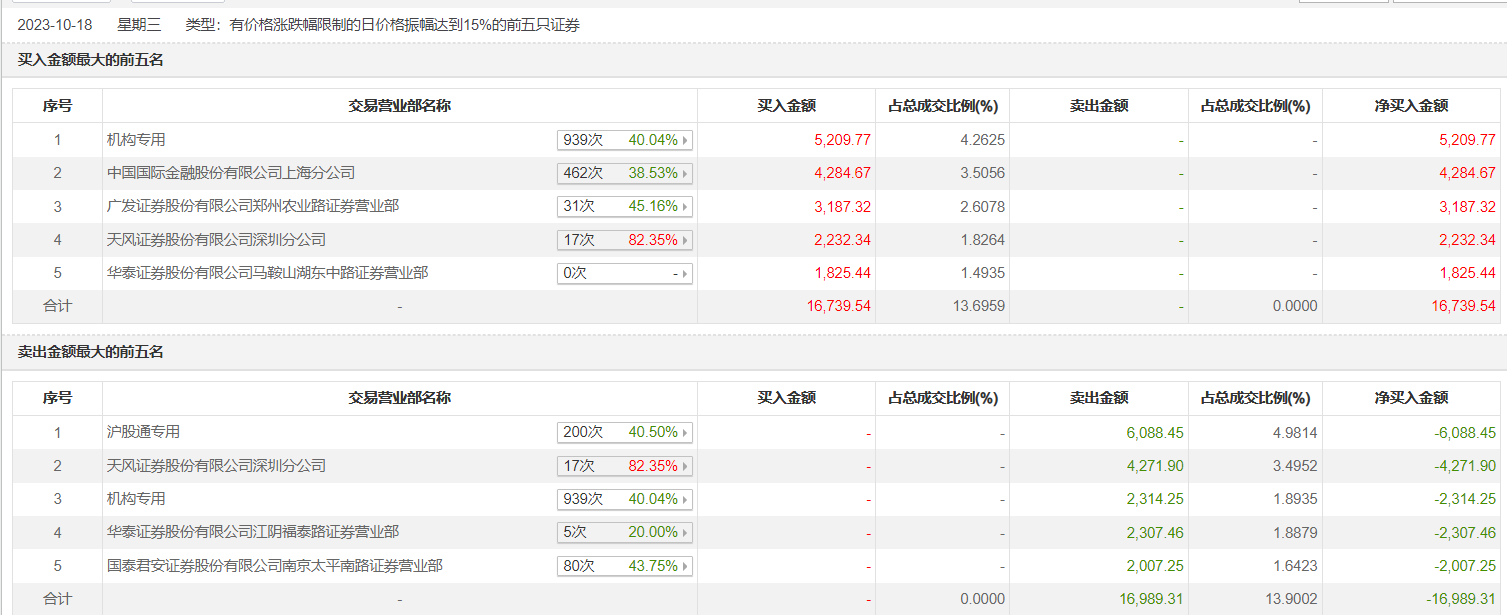 具体来看,机构买入5209.77万元,卖出2314.25万元,合计净买入2895.52万元。此外,知名游资现身龙虎榜,作手新一(国泰君安证券股份有限公司南京太平南路证券营业部)净卖出2007.25万元。此外,中国国际金融上海分公司、广发证券郑州农业路证券营业部分别买入4284.67万元、3187.32万元;沪股通专用、天风证券深圳分公司分别卖出6088.45万元、4271.90万元。
