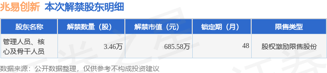 兆易创新(603986)3.46万股限售股将于12月22日解禁,占总股本0.01%