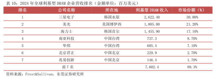 长期以来,三星、SK海力士、美光科技三大厂都在陆续退出利基DRAM市场;兆易创新作为填补这部分空白的角色,2024年利基DRAM市占率排名已来到全球第七、中国内地第二。