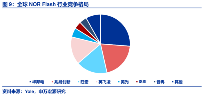 兆易创新是中国内地NORFlash的绝对龙头,2024年内市占率高居全球第二。