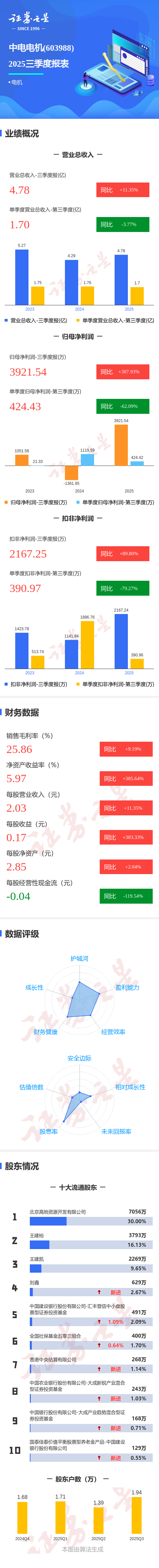图解中电电机三季报:第三季度单季净利润同比下降62.09%