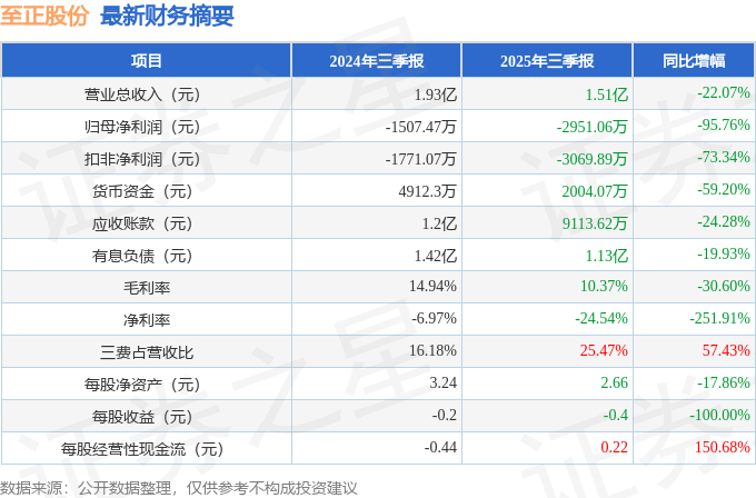至正股份(603991)2025年三季报简析:净利润同比下降95.76%,三费占比上升明显