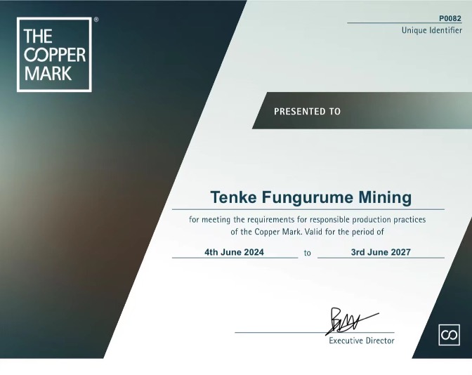 “近年来,洛阳钼业逐渐成长为全球重要的铜生产商和第一大钴生产商。在产量提升的同时,公司始终致力于以最负责任的方式为全球能源转型供应高品质、负责任的产品。”洛阳钼业总裁孙瑞文表示,“我非常高兴TFM成为非洲大陆首家获得铜标志认证的矿山,这是对公司可持续发展的认可,有助于我们在刚果(金)创造就业机会、扩大投资、创造更大的经济及社会价值。”
