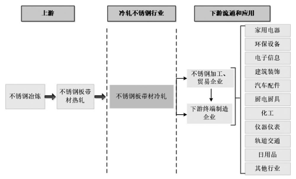 冷轧不锈钢行业的产业链从上游不锈钢的冶炼和热轧开始,再到公司所在的不锈钢板带材冷轧环节,最后延伸到下游的不锈钢流通和应用环节。