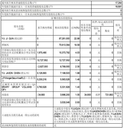 经公司第五届董事会提名委员会审核,拟提名YU JI QUN(虞纪群)、YU JASON CHEN(虞辰杰)、申素贞、邵星、陈登贵、张天汉为公司第六届董事会非独立董事候选人。