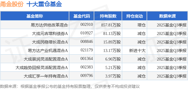 根据2025基金Q3季报公募基金重仓股数据,重仓该股的公募基金共7家,其中持有数量最多的公募基金为易方达基金的易方达供给改革混合。易方达供给改革混合目前规模为31.19亿元,最新净值3.5514(12月18日),较上一交易日下跌1.1%,近一年上涨39.1%。该公募基金现任基金经理为杨宗昌。杨宗昌在任的基金产品包括:易方达产业机遇混合A,管理时间为2024年8月28日至今,期间收益率为36.74%。