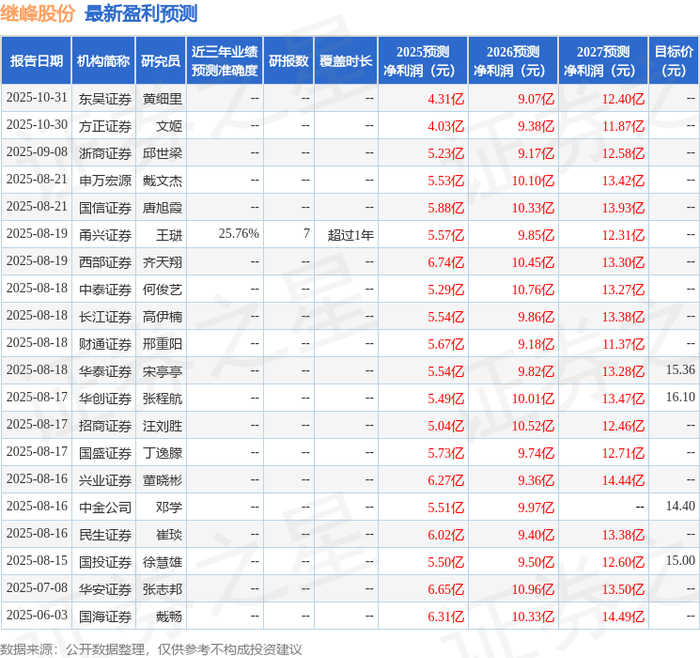 国元证券股份有限公司刘乐,陈烨尧近期对继峰股份进行研究并发布了研究报告《2025年三季度报告点评:业绩符合预期,产业布局加速推进》,给予继峰股份增持评级,目标价15.85元。