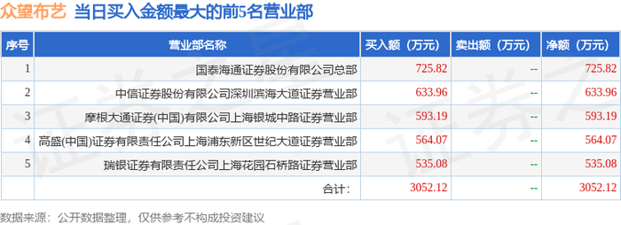 1月5日众望布艺(605003)龙虎榜数据:游资瑞鹤仙上榜