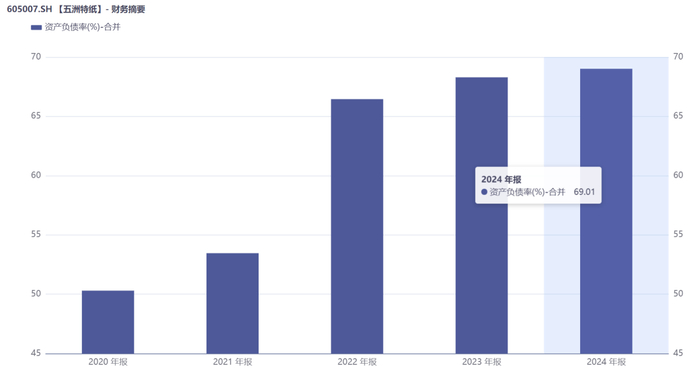 五洲特纸表示,公司近几年处于高速发展期,投资项目相继投入运行,公司已通过向特定对象发行股票优化公司负债,未来也将通过不断优化产品结构、降本增效等方式降低公司负债率。