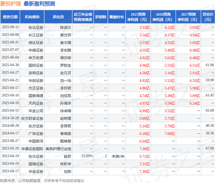 天风证券股份有限公司孙海洋近期对豪悦护理进行研究并发布了研究报告《逐步深化洁婷整合》,给予豪悦护理买入评级。