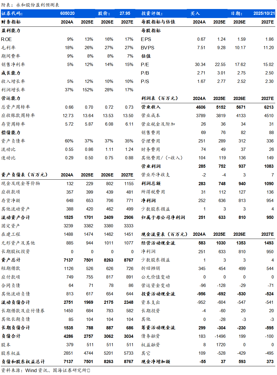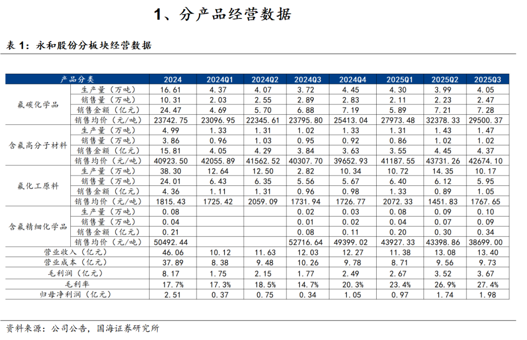 国海证券研究报告:《永和股份(605020)2025年三季报点评:制冷剂涨价趋势不减,三季度业绩同环比保持增长》
