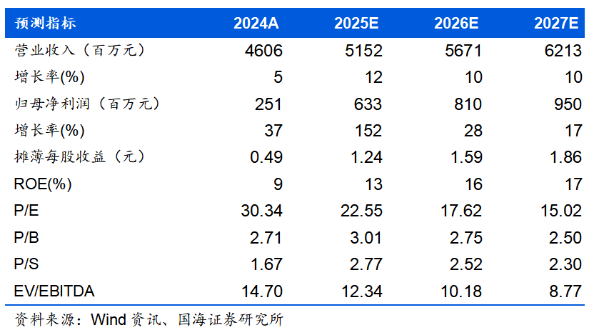 结合2025年前三季度表现,我们给出了公司盈利预期,预计公司2025-2027年营业收入为51.52、56.71、62.13亿元,归母净利润分别为6.33、8.10、9.50亿元,对应PE分别23、18、15倍,考虑到制冷剂价格维持高位,公司含氟高分子材料板块盈利持续修复,维持“买入”评级。