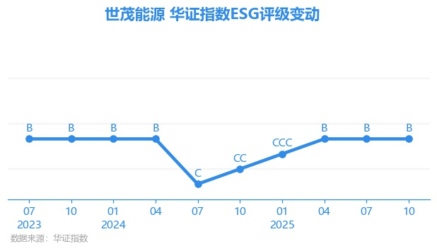 日前,华证指数公布了新一期(2025年10月31日)的ESG评级结果,世茂能源(605028.SH)获得B评级(华证指数评级为C起至AAA九档,C为最低档,AAA为其最高一级评级/AA为其第二档),上一期(2025年7月31日)ESG评级为B。本期ESG评级在20家独立电力生产商与能源贸易商行业A股上市公司中排名第10(上一期排名第10)。