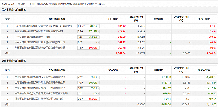 具体来看,知名游资现身龙虎榜,方新侠(中信证券西安朱雀大街证券营业部)、金元证券徐州北京南路证券营业部分别卖出1730.33万元、1133.14万元;东方财富证券拉萨东环路第一证券营业部、湘财证券杭州五星路证券营业部分别买入587.19万元、472.34万元。