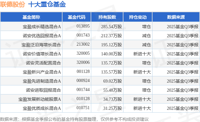重仓联德股份的前十大公募基金请见下表: