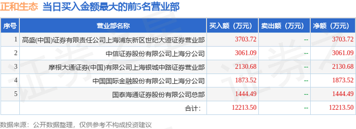 12月31日正和生态(605069)龙虎榜数据