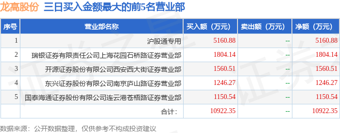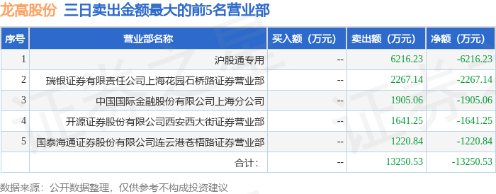 12月2日龙高股份(605086)龙虎榜数据:北向资金净卖出1055.34万元(3日)