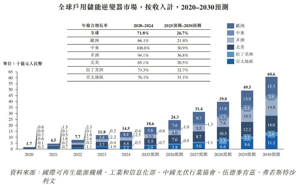 根据弗若斯特沙利文(Frost & Sullivan)报告,全球户用储能逆变器市场规模将由2020年的人民币17亿元增长至2024年的人民币145亿元,复合年增长率达71.8%。预计市场规模将由2025年的人民币186亿元持续增长至2030年的人民币606亿元,对应复合年增长率为26.7%。