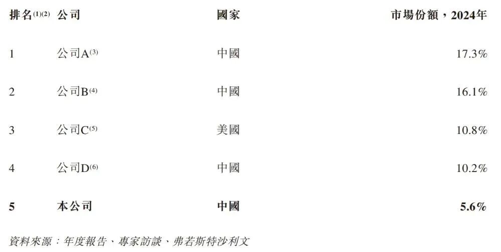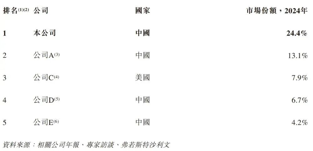 以2024年收入计算,公司市占率为24.4%排名第一。