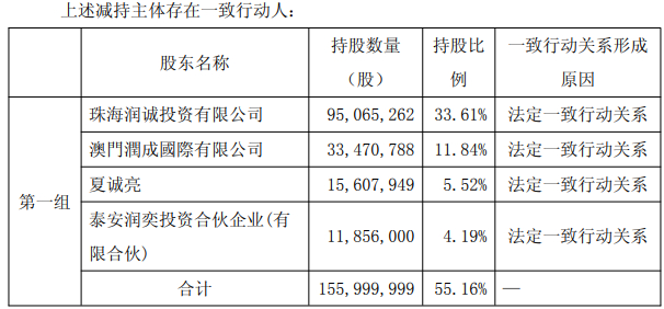 公司实控人夏诚亮与泰安润奕构成一致行动关系,本次减持前实控方共持股1.56亿股,持股比例为55.16%。