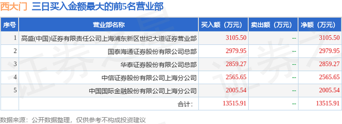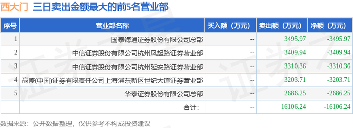 11月3日西大门(605155)龙虎榜数据:游资章盟主上榜