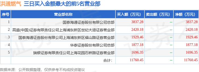 证券之星消息,沪深交易所2025年10月14日公布的交易公开信息显示,洪通燃气(605169)因非ST、*ST和S证券连续三个交易日内收盘价格涨幅偏离值累计达到20%的证券登上龙虎榜。此次是近5个交易日内第1次上榜。