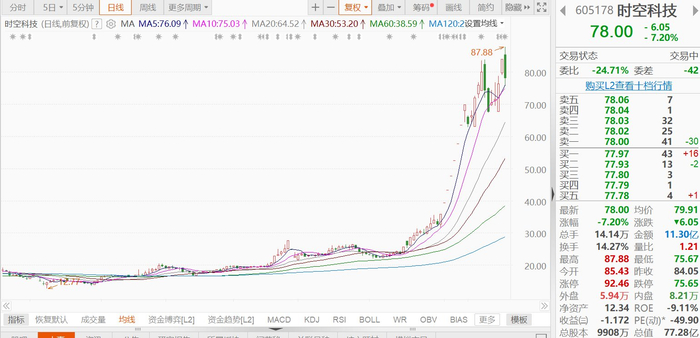 时空科技(605178.SH)跌逾7%,报78元,总市值77.28亿元。时空科技公告,公司股票价格于2025年11月13日、11月14日、11月17日连续三个交易日收盘价格涨幅偏离值累计超过20%,属于股票交易异常波动的情形。公司股价自2025年9月以来累计上涨258.73%,自2025年10月31日以来日均换手率为22.75%,换手率较高,明显放量,交易风险较大。公司股价短期上涨幅度较大,存在市场情绪过热、非理性炒作风险,已严重偏离同期上证指数和装修装饰行业指数,且严重偏离公司基本面,随时存在快速下跌风险。(格隆汇)