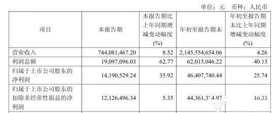 财报数据显示,一鸣食品前三季度营业收入为21.46亿元,同比增长4.26%,归母净利润为4640.77万元,同比增长25.74%。其中第三季度公司营业收入为7.44亿元,同比上升8.52%,归母净利润同比增长35.92%至1419.05万元,在乳企承压的背景下,实现了营收和利润的双增长。
