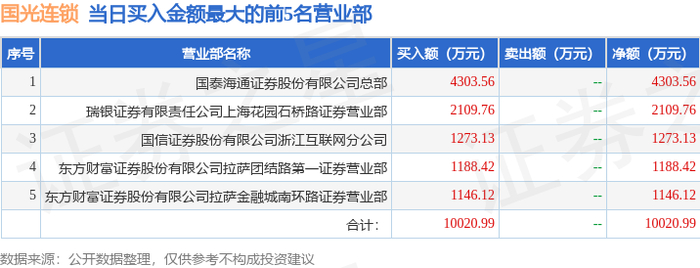 10月17日国光连锁(605188)龙虎榜数据