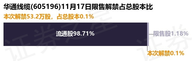 华通线缆(605196)53.2万股限售股将于11月17日解禁,占总股本0.1%
