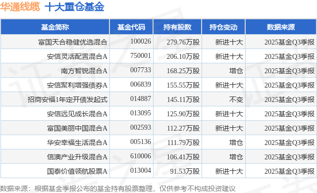 根据2025基金Q3季报公募基金重仓股数据,重仓该股的公募基金共38家,其中持有数量最多的公募基金为富国基金的富国天合稳健优选混合。富国天合稳健优选混合目前规模为24.64亿元,最新净值1.6828(12月17日),较上一交易日上涨1.69%,近一年上涨18.52%。该公募基金现任基金经理为张啸伟。张啸伟在任的基金产品包括:富国美丽中国混合A,管理时间为2016年5月19日至今,期间收益率为169.65%;富国睿泽回报混合,管理时间为2019年6月5日至今,期间收益率为119.48%。