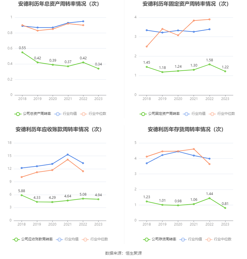 数据统计显示,安德利近三年营业总收入复合增长率为1.33%,近三年净利润复合年增长率为18.96%。