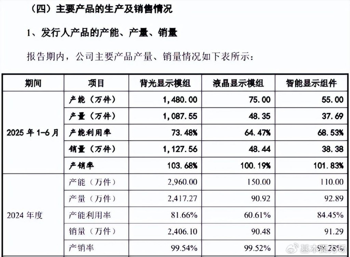 但问题在于,目前困扰伟时电子的,可能并不是产能不足,相反却是产能过剩。根据增发募集说明书披露的数据,今年上半年公司的背光显示模组产能利用率为73.48%,液晶显示模组和智能显示组件则更低,都不到70%,且相比2024年都有所下滑。