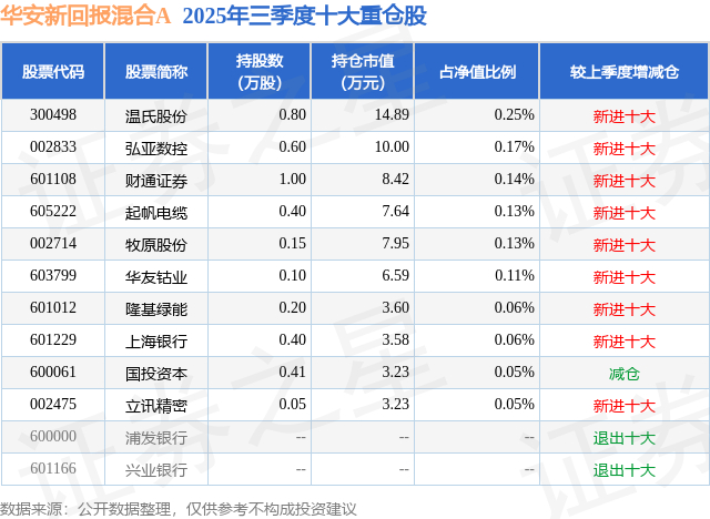 根据2025基金Q3季报公募基金重仓股数据,重仓该股的公募基金共1家,其中持有数量最多的公募基金为华安基金的华安新回报混合A。华安新回报混合A目前规模为0.35亿元,最新净值1.517(11月20日),较上一交易日下跌0.04%,近一年上涨1.59%。该公募基金现任基金经理为朱才敏。朱才敏在任的基金产品包括:华安双债添利债券A,管理时间为2014年11月20日至今,期间收益率为62.97%;华安智联混合(LOF)A,管理时间为2021年3月8日至今,期间收益率为42.93%;华安添和一年债券A,管理时间为2021年7月13日至今,期间收益率为6.03%。