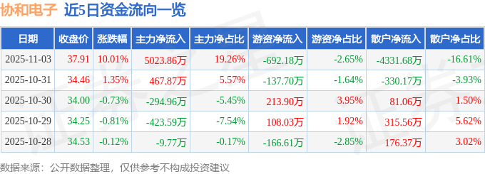 11月3日的资金流向数据方面,主力资金净流入5023.86万元,占总成交额19.26%,游资资金净流出692.18万元,占总成交额2.65%,散户资金净流出4331.68万元,占总成交额16.61%。