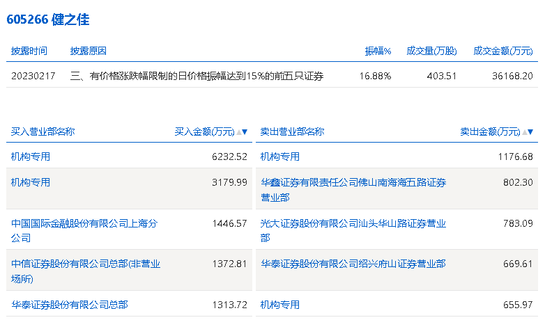 2月17日,健之佳今日涨8.1%,龙虎榜数据显示,上榜营业部席位全天成交1.76亿元,占当日总成交金额比例为48.75%。其中,买入金额为1.35亿元,卖出金额为4087.65万元,合计净买入9457.95万元。