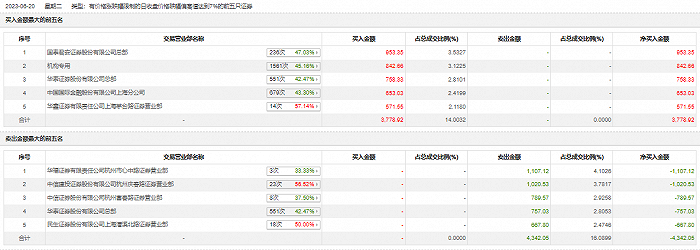 具体来看,机构合计净买入842.66万元。此外,知名游资现身龙虎榜,炒股养家(华鑫证券有限责任公司上海茅台路证券营业部)净买入571.55万元。此外,华福证券杭州市心中路证券营业部、中信建投证券杭州庆春路证券营业部分别卖出1107.12万元、1020.53万元;国泰君安证券总部、华泰证券总部分别买入953.35万元、758.33万元。