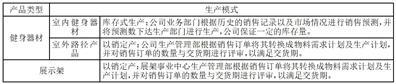 公司主要产品为健身器材及展示架产品,公司各类产品通过不同模式进行生产,具体如下表所示: