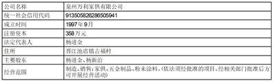 4、履约能力分析:泉州万利家俱有限公司资信情况良好,根据其财务、经营状况及历年实际履约情况分析,均具备较好履约能力。