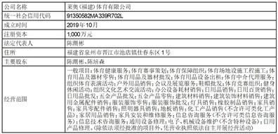 2、关联关系:莱奥(福建)体育有限公司系公司董事杨凯旋女儿杨宝珊的配偶陈潮彬持有95%股权的公司。
