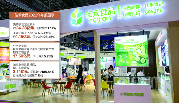 2022年年报显示,佳禾食品期内实现营业收入约24.28亿元,同比增加1.17%;实现归属于上市公司股东的净利润约1.15亿元,同比减少23.45%。分产品来看,粉末油脂业务仍是公司的营收主力,期内实现营收17.50亿元,同比减少5.76%;咖啡业务紧随其后,期内实现营收2.14亿元,同比增加108.84%,已经成为公司的第二曲线。