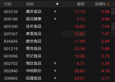 上证报中国证券网讯 12月27日午后,A股食品板块走高。13时16分,
