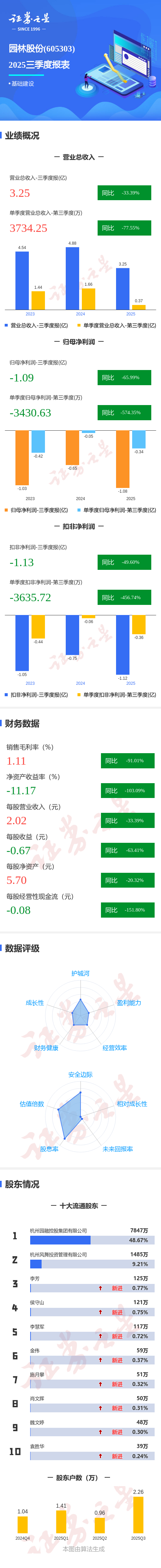 图解园林股份三季报:第三季度单季净利润同比下降574.35%