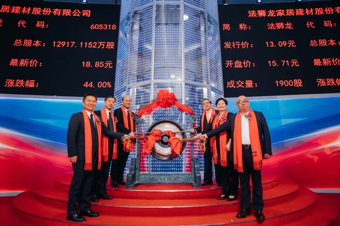 2020年8月,法狮龙在上交所上市,沈正华夫妇合计持股70%。