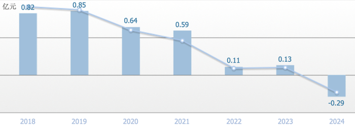 受房地产调整等因素影响,2020年法狮龙上市后,净利润连年下降,2024年首次亏损,亏损2900万元。