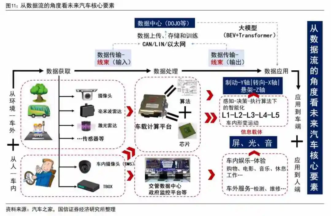从数据流的角度看未来汽车核心要素,数据经过传感器(获取数据)-域控制器(处理数据)-制动和转向(应用数据),都离不开数据传输环节的线束(数据输入和输出)。沪光股份作为汽车线束自主龙头,主营汽车线束业务,负责数据传输环节。