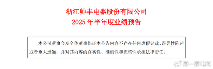 帅丰电器预计上半年扣除非经常性损益的净利润亏损