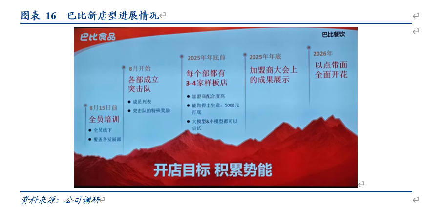 二是巴比数字化赋能,门店帮扶能力强,能够帮助加盟商提升管理边界。一方面公司全面导入数字化管理平台(SAP、TMS、WMS等),贯穿“门店下单—生产—配送—签收”全链条运营,优化物流调度、订单履约以及库存管理,降低成本和人力依赖,另一方面用标准化制度固化动作、百余名专业督导“深下沉+高频巡检”、外卖统管与分级扶持即时增效,能够提升单店模型效率。由于新店型人员增配、投入增加,加盟商管理难度相较传统店型明显增加,公司门店运营经营丰富,具备全流程完备的帮扶体系,能够充分赋能加盟商,打开管理边界。