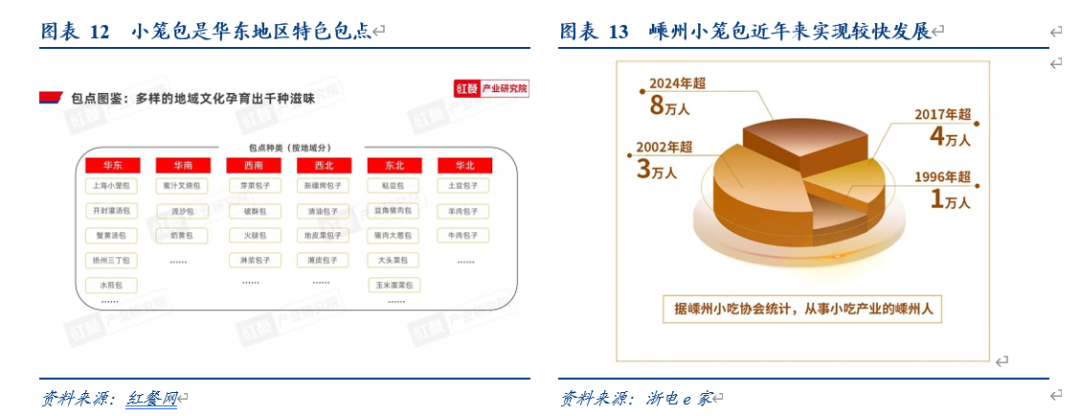 为什么选小笼包:赛道潜力足+行业有空白+巴比适配性强。小笼包作为华东特色包点,全国门店数量3万家以上,且长期处于有品类无品牌分散状态,整合空间较大,且近年随冷冻食品普及实现快速增长。同时小笼包有一定门槛,而巴比可依托主业协同、冷冻技术及学院赋能,解决行业标准化难题。