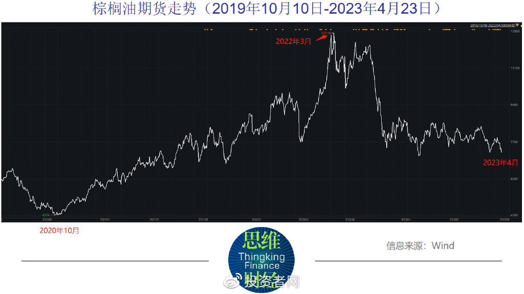 但回顾棕榈油期货近年来走势,可以看到,2020年10月棕榈油价格近年来最低,为4324元/吨;到2022年3月达到最高的12718元/吨,